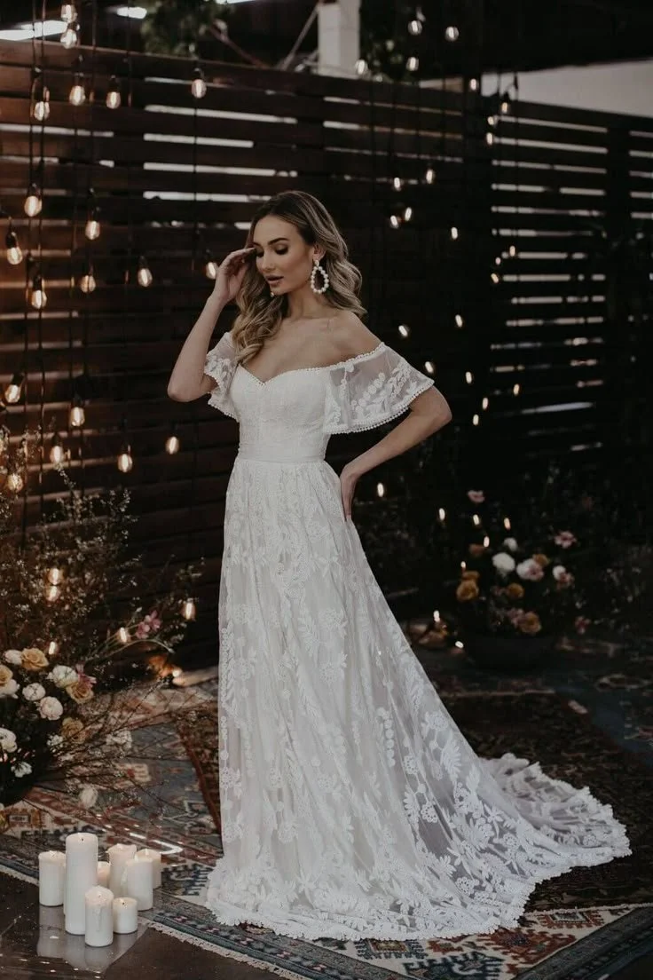 There’s something timeless about an off-the-shoulder gown. In 2025, we’re seeing more brides choose this style for its soft, feminine vibe.